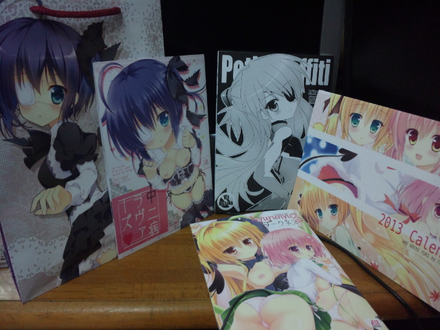 黒ノ御神籤(御敷仁)「BBox.C-Plus02」、マーベラスグレース(立羽)「clear pink」、Lemming「ほなみんとイチャラブ」、Pico−ba(Rico)「冬コミセット」、こりすや(こりす)「少女卒業」、おかりな(ぢょんだいらん)「COPERA#03」、みぐのねっと「とあるお姫様の禁食目録」、涼屋(涼香)「ラブリー眼帯六花ちゃん」。黒ノ御神籤は新刊だけなら12時以降に行けば瞬殺で買えることが判明wちなみに、マジックで修正入ってますwwwマーベラスグレースは4回買ってて現地で買えたのはこれが2回目wおかりな、涼屋、こりすやはパキさんに頼みましたwみぐのねっとの新刊は、これはマジアカ風四文字言葉でクイズを出していたサークルさんですwww中にも問題が多数w俺が行った12時半くらいの時点では解答できたのは0人でしたが、一体何人の人が答えれたのか・・・・・。カンニングしないとわからないw
