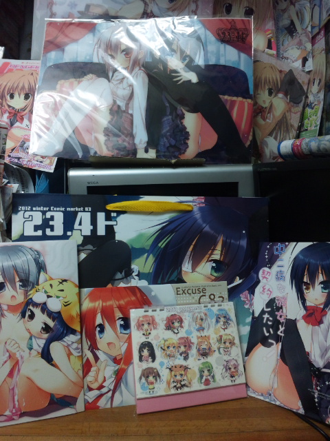 祭社冬コミセット。前回から買い始めたサークルさんなんですが、いまだになぜここのサークルさんが「お気に入り」リストに入っているのかが謎なんですw何がきっかけだったのか。かわいいからいいけど!今回はやっとえっちぃ本を読めるので嬉しいです!!しかもフルカラー!!